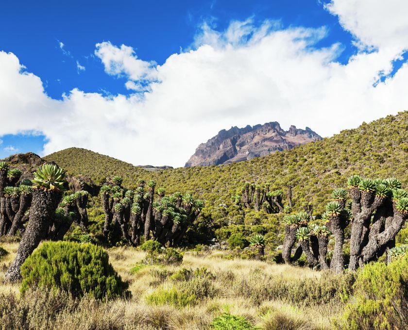Notre aventure débutera par une marche au cœur d’une forêt tropicale dense et luxuriante, havre de verdure où évoluent plusieurs espèces de singes. Peu à peu, la végétation s’éclaircit, cédant la place aux landes, royaume du célèbre séneçon géant endémique du Kilimandjaro. Le refuge d’Horombo se trouvera alors à portée de pas : nous y passerons deux nuits à 3 700 m d’altitude, avec une excursion d’acclimatation vers les fascinantes Zebra Rocks, en direction du massif de Mawenzi.