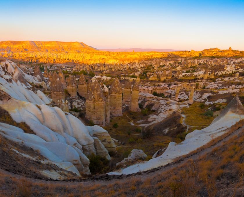 Bienvenue en Cappadoce, terre de gorges profondes et de vallées mystérieuses, de sanctuaires troglodytes et de cités creusées dans la pierre. Au fil de nos randonnées, nous découvrirons l’une des plus anciennes églises rupestres de la Vallée Rouge, gravirons les hauteurs d’Uchisar, la ville la plus élevée de la région, et savourerons le fameux testi kebab au coucher du soleil.